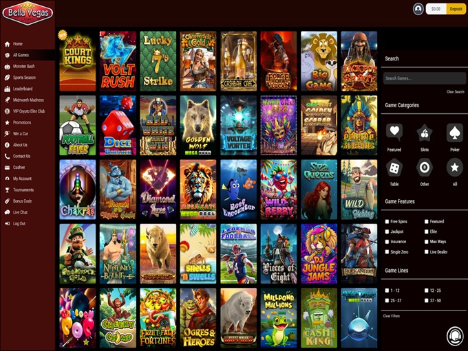 Bella Vegas Casino offers over 150 different games in high-definition, and true to form, they’re simply excellent. There’s something here for everyone. Guests have a dizzying array from which to choose: classic slots, video slots, video poker (including multi-hand, 10-play and 50-play variants), table games (including Blackjack, Roulette and Craps), Keno and scratch cards.